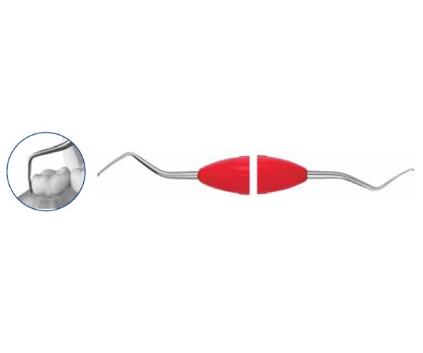 Handle that provides the instrument with a high level of ergonomics; the curved handle allows for easy access to the molar area even with the smallest oral opening.