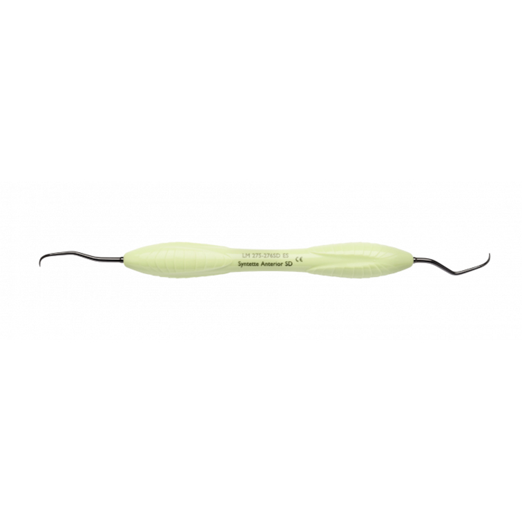 Cureta Universal Dual Gracey para dentes anteriores, com revestimento especial que dispensa afilamento.