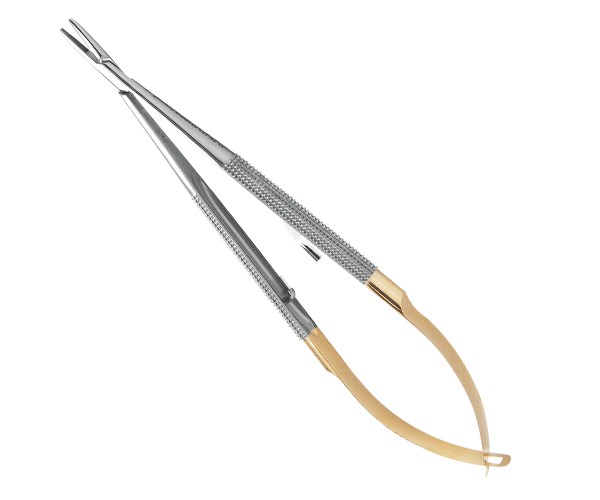 For Castroviejo needles. Used to hold and guide the needle during suturing. 18 cm.