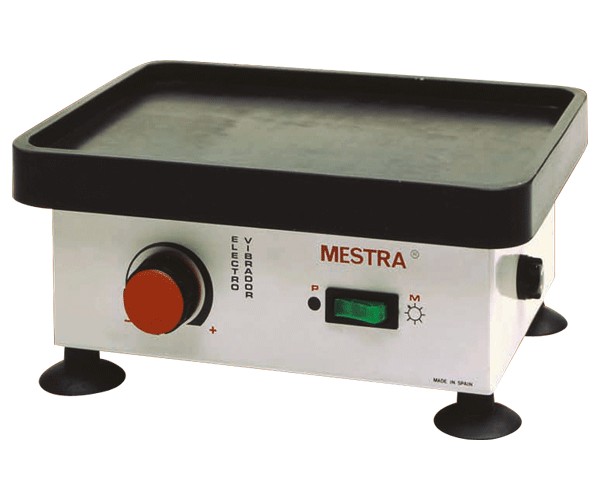 Made of steel sheet. Epoxy-coated paint. Equipped with a luminous start/stop switch. Potentiometer for progressive vibration regulation - +. Supported by adhering suction cups. The working plate is made of rubber over a metal body. Voltage: 230 V 50/60 Hz. Fuse: 15 A. Working surface: 220 x 160 mm. Height: 105 mm. Weight: 62 kg.