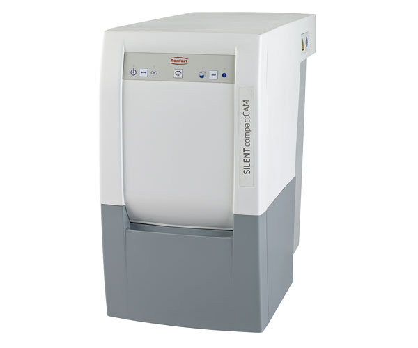 Suction system for a workstation for CAM dental equipment. Bidirectional communication between the suction system and the CAM machine thanks to the PLC interface. Dust bag savings due to a bagless fine filtration technique. Optimized suction performance for processes in compact CAD-CAM equipment.