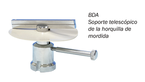 Telescopic support for securing the bite fork during the assembly of the upper model.