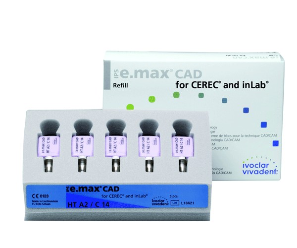 IPS EMAX CAD blocks for CEREC HT are lithium disilicate blocks for the Sirona CEREC system at the highest translucency level. The blocks are available in 16 A-D shades and 4 Bleach BL shades.