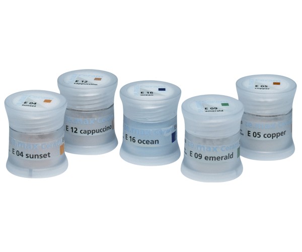 19 masses with a "3 in 1" effect that are used for internal characterizations, mixing with other IPS EMAX Ceram masses, and for performing final superficial or external characterizations. The fine powder has different degrees of fluorescence depending on each individual color. 5 g.