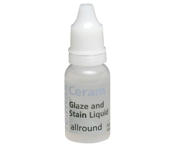 Glazing and makeup liquid for IPS EMAX Ceram available in two versions: Allround allows for a suitable conventional consistency for handling and drying. The masses mixed with this liquid can be worked for approximately half a day. Longlife, however, offers a pasty consistency, and the materials mixed with this liquid can be manipulated for a longer period of time (approximately up to 1 week).