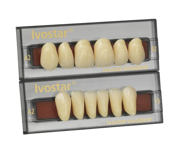 Ivostar three-layer tooth, ideal complement for the Gnathostar posterior tooth line.