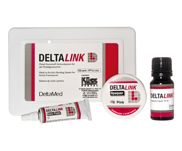 Delta Link ensures an excellent long-term bond under compressive shear and tensile loads, preventing marginal gaps without subjecting the metal to high temperatures. Suitable for any metal and acrylic. Aesthetic hooks. Customization of the opaquer. Resistant to monomer. The kit contains: Bonding tube (7 g), Opaquer powder (10 g), Opaquer liquid (10 ml).