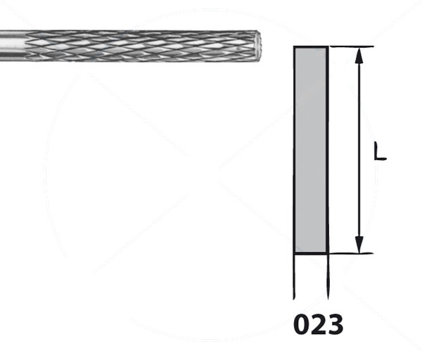The cross denture divides the instruments into individual elements arranged alternately (crosswise). Short, granular chips. Smooth cutting with almost no pressure. E/EF = fine/extrafine cross denture for acrylics and metal alloys. ISO: 500 104 116190 023 - Maximum Revolution: 100,000 rpm - CYLINDRICAL GRAIN Diameter: 023 - Shank: HANDPIECE - Application: TRIMMING METAL ALLOYS - Packaging Quantity: 1