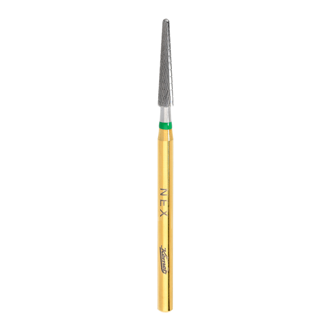 Tungsten carbide bur for non-precious metal alloys and cast models. The new NEX denture exclusive to Komet is an improved version of our successful NE denture, combining maximum wear capacity (very effective), a long service life, and a perfect quality surface. Additionally, the NEX denture is characterized by operating with low vibration, thereby relieving the operator's wrist fatigue. ISO: - Maximum Speed: 100,000 rpm - ROUND CONICAL GRAIN Diameter: 023 - Shank: HANDPIECE - Application: ROUGHING NON-PRECIOUS METAL ALLOYS AND CAST MODELS - Packaging Quantity: 1