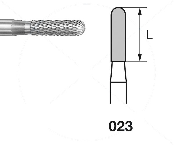 The cross dentition divides the instruments into individual elements arranged alternately (crosswise). Short, granular chips. Smooth cutting with almost no pressure. E/EF = fine/extrafine cross dentition for acrylics and metal alloys. ISO: 500 104 141140 023 - Maximum Revolution: 100,000 rpm - ROUND END CYLINDRICAL GRAIN Diameter: 023 - Shank: HANDPIECE - Application: FINE DEBULKING OF ACRYLICS AND METAL ALLOYS - Packaging Quantity: 1