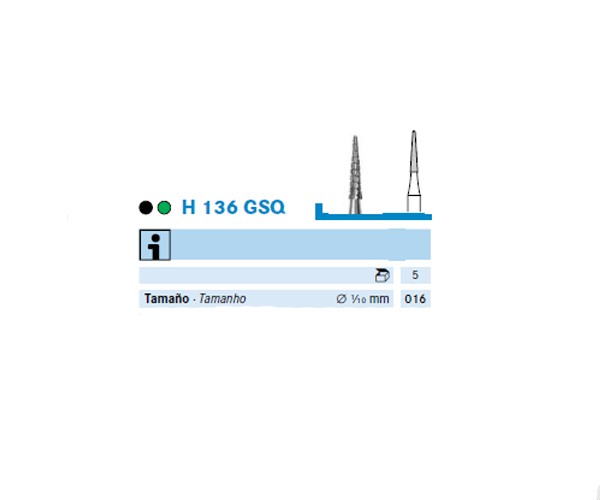GSK: The GSQ cut is designed for gentle work on soft acrylics in both clinical and dental laboratory settings. It is suitable for trimming or finishing temporary restorations in clinics and for soft acrylics in laboratories. The geometry of the cuts, specifically designed for these materials, prevents heat generation and buildup, avoiding obstruction and fraying of the working surface. ISO: 500 104 184216 016 - Maximum Speed: 100,000 rpm - LANCE GRAIN Diameter: 016 - Shank: HANDPIECE - Application: DEBULK ACRYLIC AND SOFT BASES - Packaging Quantity: 1