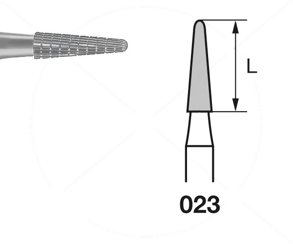 GTI: High-efficiency cuts specially designed for titanium. The effective cutting edges of the GTI tungsten carbide special instruments have been designed for the unique characteristics of titanium alloys compared to the cutting edges and blades of other instruments. High material removal. Extended service life. ISO: - Maximum Speed: 100,000 rpm - ROUND CONICAL GRAIN Diameter: 023 - Shank: HANDPIECE - Application: TITANIUM ROUGHING - Packaging Quantity: 1