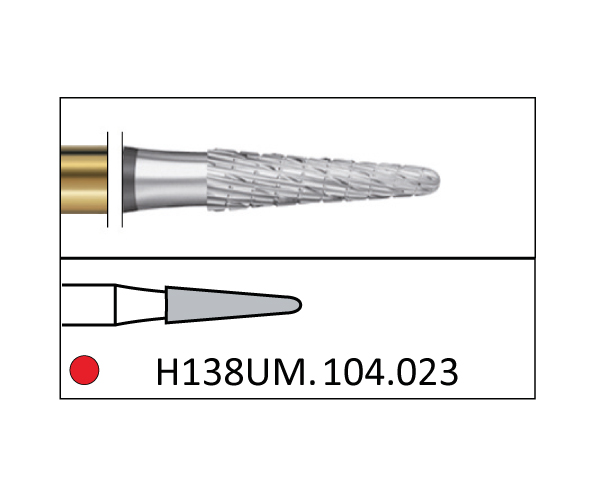 UM: Tungsten carbide cutters with multifunctional cutting capabilities: Their special characteristics determine the reduction and quality of surfaces in precious and non-precious metals and in frameworks. Innovative edge design for smooth operation and reduced wrist strain. The combined sharpening ensures a long service life and cost-effectiveness. ISO: - Maximum Speed: 100,000 rpm - ROUND CONICAL GRAIN Diameter: 023 - Shank: HANDPIECE - Application: TRIMMING AND POLISHING METAL ALLOYS - Packaging Quantity: 1