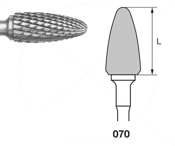 The cross dentition divides the instruments into individual elements arranged alternately (crosswise). Short granular chips. Smooth cutting with almost no pressure. E/EF = fine/extrafine cross dentition for acrylics and metal alloys. ISO: 500 104 274190 070 - Maximum Revolution: 30000 rpm - BELLOTA GRAIN Diameter: 070 - Shank: HANDPIECE - Application: TRIMMING ACRYLIC, PLASTER, AND METAL ALLOYS - Packaging Quantity: 1