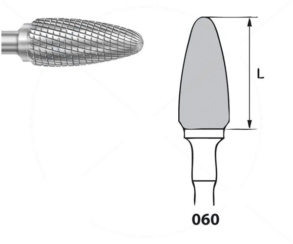 FSQ: Fine denture with high cutting efficiency and cross-cut design. For soft relines. The cross-cut of this high cutting efficiency denture divides the cutting edges of the instrument into smaller segments. ISO: 500 104 274134 060 - Maximum Speed: 50,000 rpm - BELLOTA GRAIN Diameter: 060 - Shank: HANDPIECE - Application: TRIMMING HARD OR ELASTIC ACRYLICS - Packaging Quantity: 1