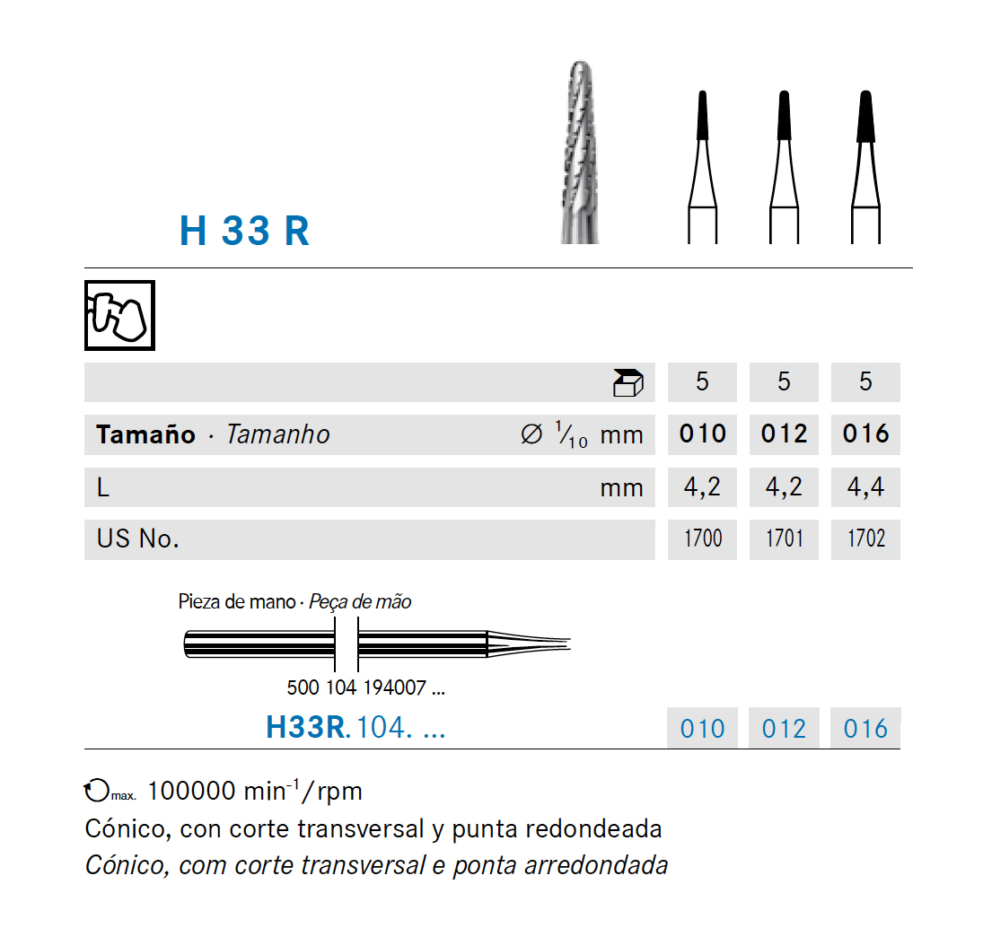 H33R.104.012 KOMET TUNGSTEN CARBIDE CONICAL ROUND BUR HANDPIECE ø 012 - 5 pcs