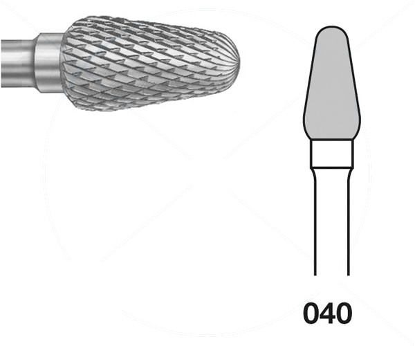 The cross dentition divides the instruments into individual elements arranged alternately (crosswise). Short, granular chips. Smooth cutting with almost no pressure. E/EF = fine/extrafine cross dentition for acrylics and metal alloys. ISO: 500 104 263140 040 - Maximum Revolution: 100,000 rpm - BELLOTA GRAIN Diameter: 040 - Shank: HANDPIECE - Application: FINE DEBURRING OF ACRYLICS AND METAL ALLOYS - Packaging Quantity: 1