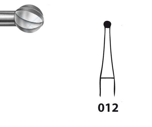 Round. Welded at the neck of the bur. The tungsten carbide extends along the shank to increase neck stability. ISO: 500 104 001175 012 - Maximum Speed: 100,000 rpm - ROUND GRAIN Diameter: 012 - Shank: HANDPIECE - Application: ACRYLIC AND METAL ALLOY GRINDING - Packaging Quantity: 5