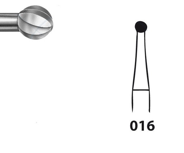 Round. Welded at the neck of the bur. The tungsten carbide extends along the shank to increase the stability of the neck. ISO: 500 104 001175 016 - Maximum Speed: 100,000 rpm - ROUND GRAIN Diameter: 016 - Shank: HANDPIECE - Application: ACRYLIC AND METAL ALLOY GRINDING - Packaging Quantity: 5