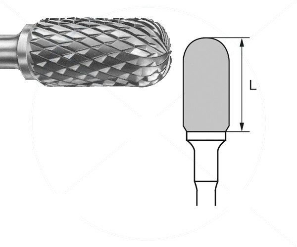 The cross dentition divides the instruments into individual elements arranged alternately (crossed). Short, granular chips. Smooth cutting with almost no pressure. E/EF = fine/extrafine cross dentition for acrylics and metal alloys. ISO: 500 104 137190 060 - Maximum Speed: 50,000 rpm - ROUND-CYLINDRICAL GRAIN Diameter: 060 - Shank: HANDPIECE - Application: TRIMMING ACRYLIC, PLASTER, AND METAL ALLOYS - Packaging Quantity: 1