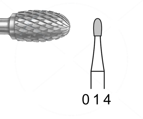 The cross dentition divides the instruments into individual elements arranged alternately (crosswise). Short granular chips. Smooth cutting with almost no pressure. E/EF = fine/extrafine cross dentition for acrylics and metal alloys. ISO: 500 104 277190 014 - Maximum Revolution: 100,000 rpm - EGG GRAIN Diameter: 014 - Shank: HANDPIECE - Application: TRIMMING ACRYLIC, PLASTER, AND METAL ALLOYS - Packaging Quantity: 1