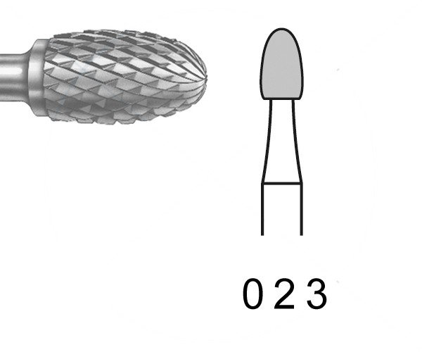 The cross denture divides the instruments into individual elements arranged alternately (crosswise). Short granular chips. Smooth cutting with almost no pressure. E/EF = fine/extrafine cross denture for acrylics and metal alloys. ISO: 500 104 277190 023 - Maximum Revolution: 100,000 rpm - EGG GRAIN Diameter: 023 - Shank: HANDPIECE - Application: TRIMMING ACRYLIC, PLASTER, AND METAL ALLOYS - Packaging Quantity: 1