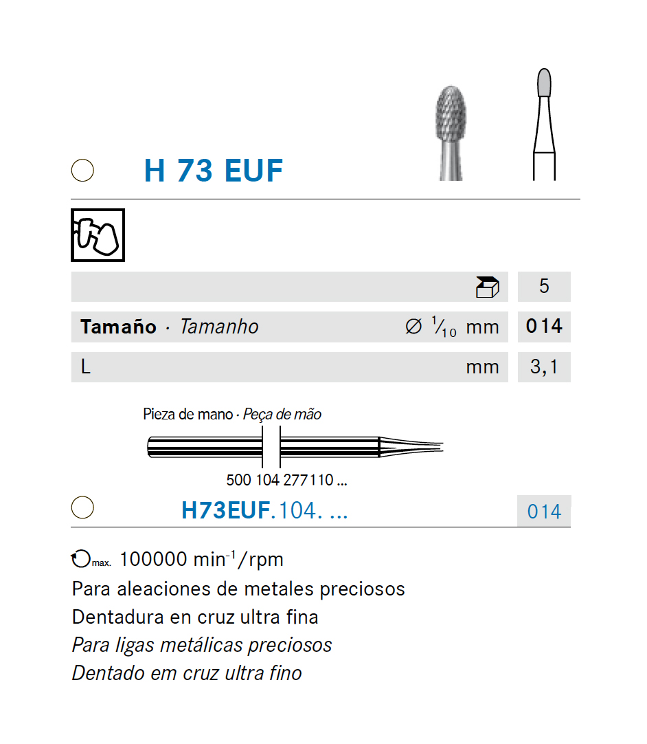 H73EUF.104.014 KOMET TUNGSTEN EGG BUR HANDPIECE ø 014 - 1 unit