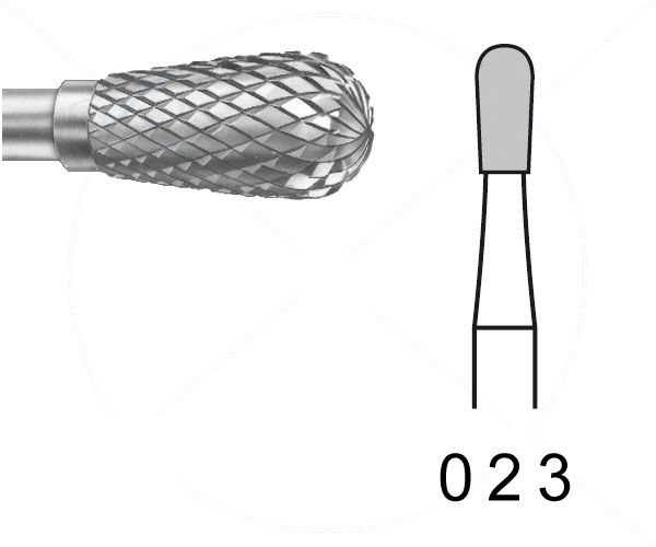 The cross dentition divides the instruments into individual elements arranged alternately (crosswise). Short, granular chips. Smooth cutting with almost no pressure. E/EF = fine/extrafine cross dentition for acrylics and metal alloys. ISO: 500 104 237190 023 - Maximum Revolution: 100,000 rpm - BUR DIAMETER: 023 - Shank: HANDPIECE - Application: TO ROUGHEN ACRYLIC, PLASTER, AND METAL ALLOYS - Packaging Quantity: 1