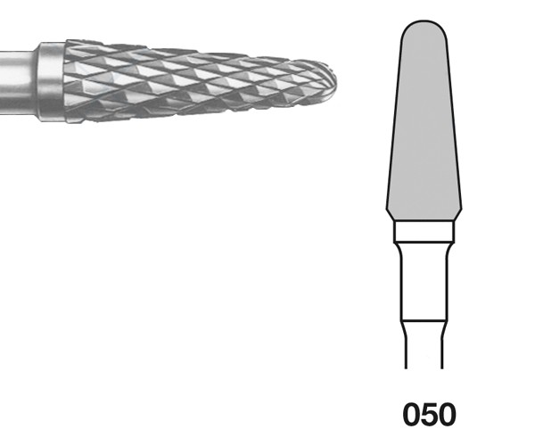 The cross dentition divides the instruments into individual elements arranged alternately (crossed). Short, granular chips. Smooth cutting with almost no pressure. E/EF = fine/extrafine cross dentition for acrylics and metal alloys. ISO: 500 104 194190 050 - Maximum Speed: 80,000 rpm - ROUND CONICAL GRAIN Diameter: 050 - Shank: HANDPIECE - Application: TRIMMING ACRYLIC, PLASTER, AND METAL ALLOYS - Packaging Quantity: 1