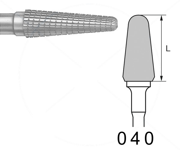 GTI: High-efficiency cuts specially designed for titanium. The effective cutting edges of the GTI tungsten carbide special instruments have been designed for the unique characteristics of titanium alloys compared to ISO filaments: - Maximum Speed: 100,000 rpm - ROUNDED CYLINDRICAL GRAIN Diameter: 040 - Shank: HANDPIECE - Application: TITANIUM ROUGHING - Packaging Quantity: 1