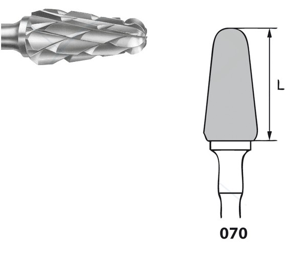 The type A bur is safety-designed with left-hand twist. High safety when milling with pulse. The instrument remains fixed and secure in the handpiece even at high speeds and with high cutting capacity. ISO: 500 104 194223 070 - Maximum Revolution: 30,000 rpm - ROUND CONICAL GRAIN Diameter: 070 - Shank: HANDPIECE - Application: DRESSING DRY GYPSUM - Packaging Quantity: 1