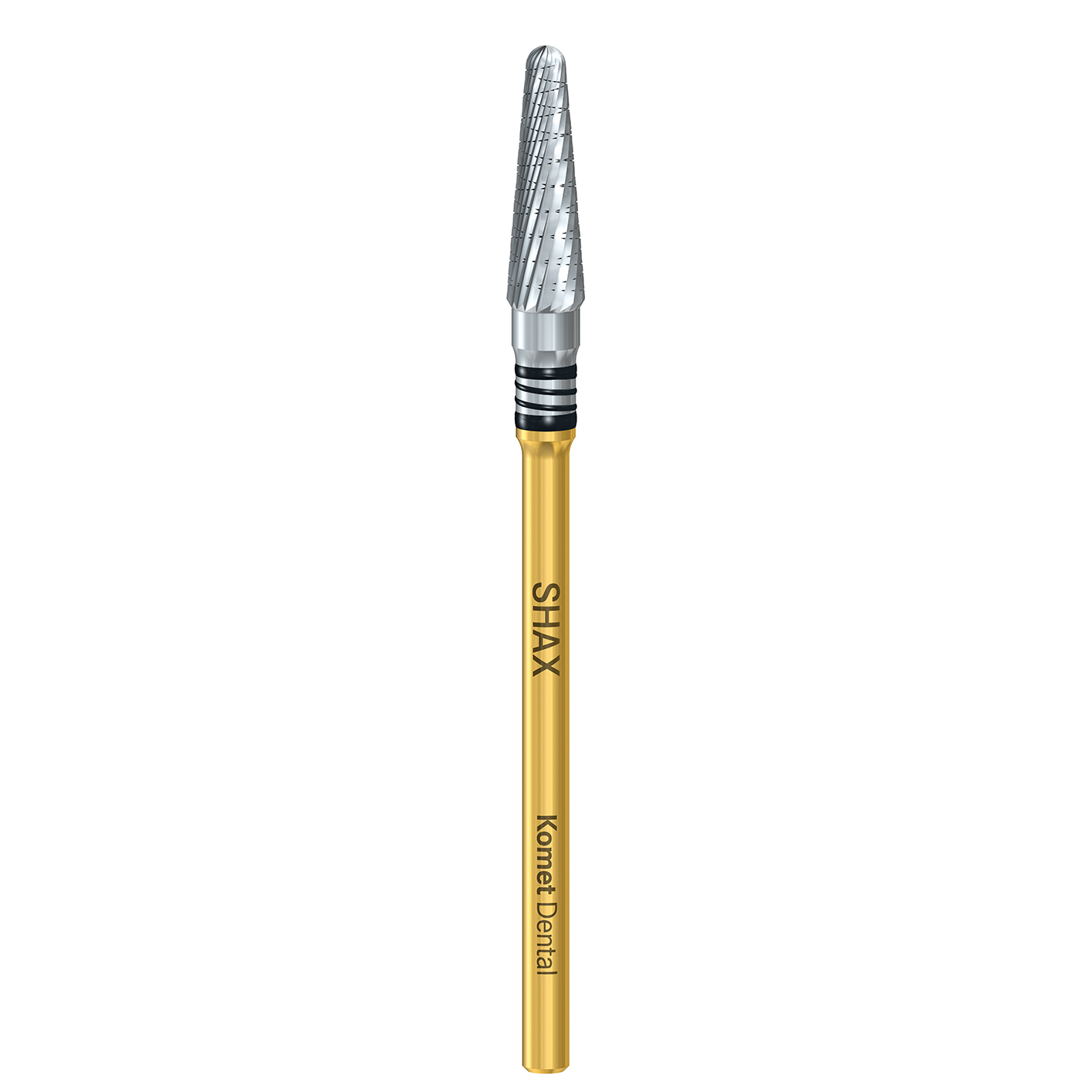 The SHAX metal cutters feature a unique innovative tooth design. High material removal power achieving smooth surfaces. ISO: - Maximum Speed: 100,000 rpm - ROUND CONICAL GRAIN Diameter: 040 - Shank: HANDPIECE - Application: - Packaging Quantity: 1