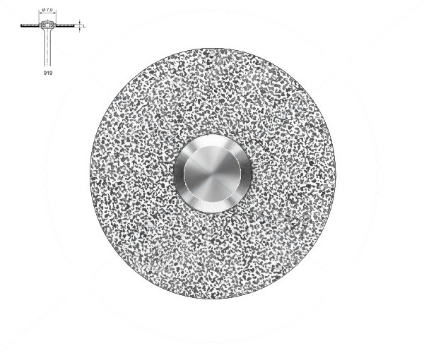 Coating on the lower face. For rough cutting and contouring of ceramics. ISO: 806 104 346524 220 - Maximum Revolution: 20000 rpm - COATING GRAIN LOWER FACE Diameter: 220 - Shank: HANDPIECE - STANDARD GRAIN Application: RIGID COATING ON LOWER FACE - Packaging Quantity: 1