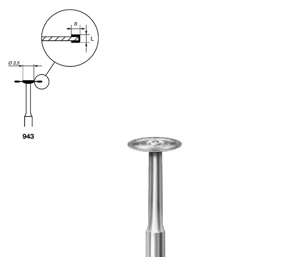 Flexible longer lifespan thanks to the interspersed diamond edges. For separating ceramics. ISO: 806 104 361514 065 - Maximum Speed: 40,000 rpm - RIGID GRIT Diameter: 065 - Shank: HANDPIECE - STANDARD GRIT Application: FLEXIBLE COATING BOTH SIDES - Packaging Quantity: 1