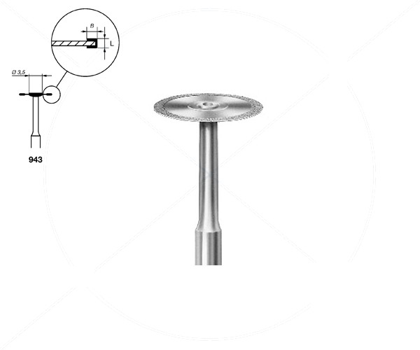 Coating on both sides. For fine cutting of ceramics. ISO: 806 104 361514 100 - Maximum Speed: 30,000 rpm - RIGID GRAIN Diameter: 100 - Shank: HANDPIECE - STANDARD GRAIN Application: FLEXIBLE COATING ON BOTH SIDES - Packaging Quantity: 1