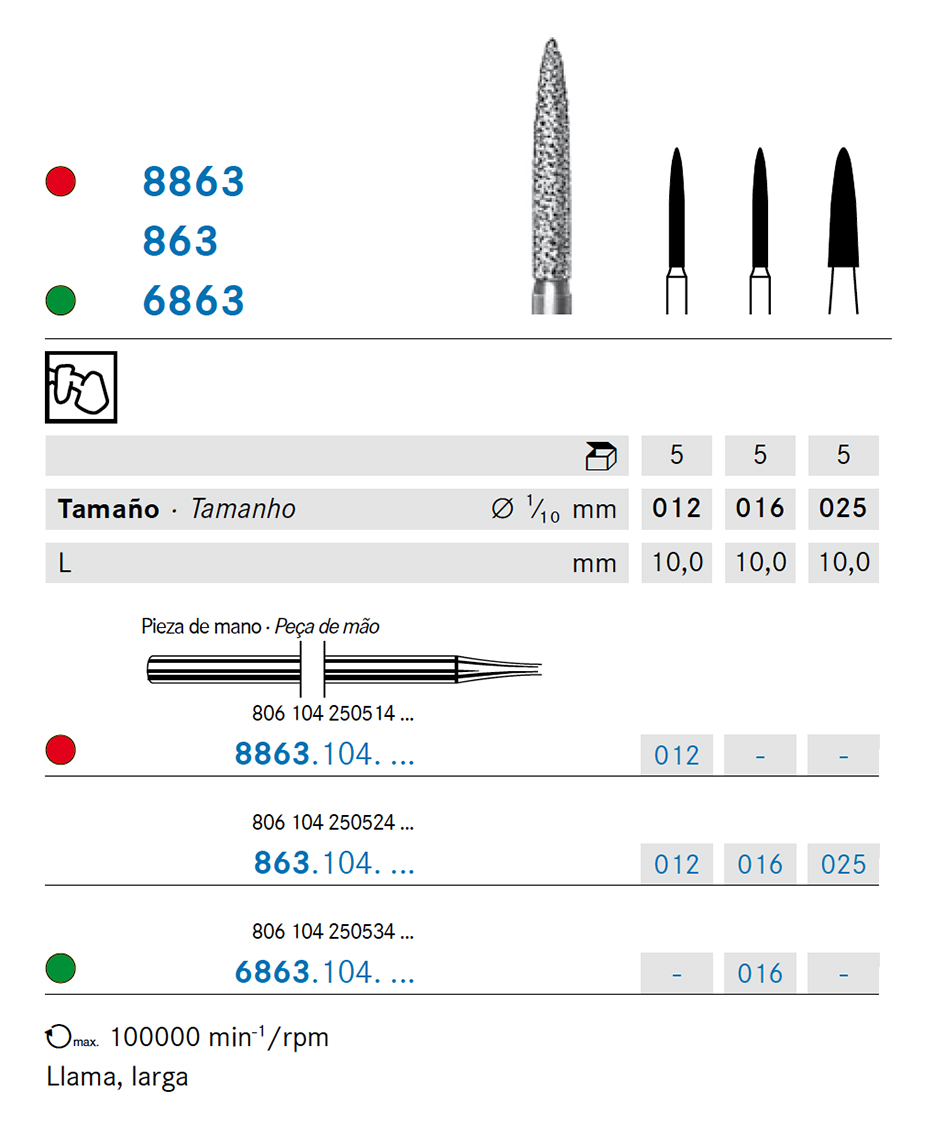 8863.104.012 KOMET DIAMOND BUR FLAME HANDPIECE ø 012 - 5 pcs