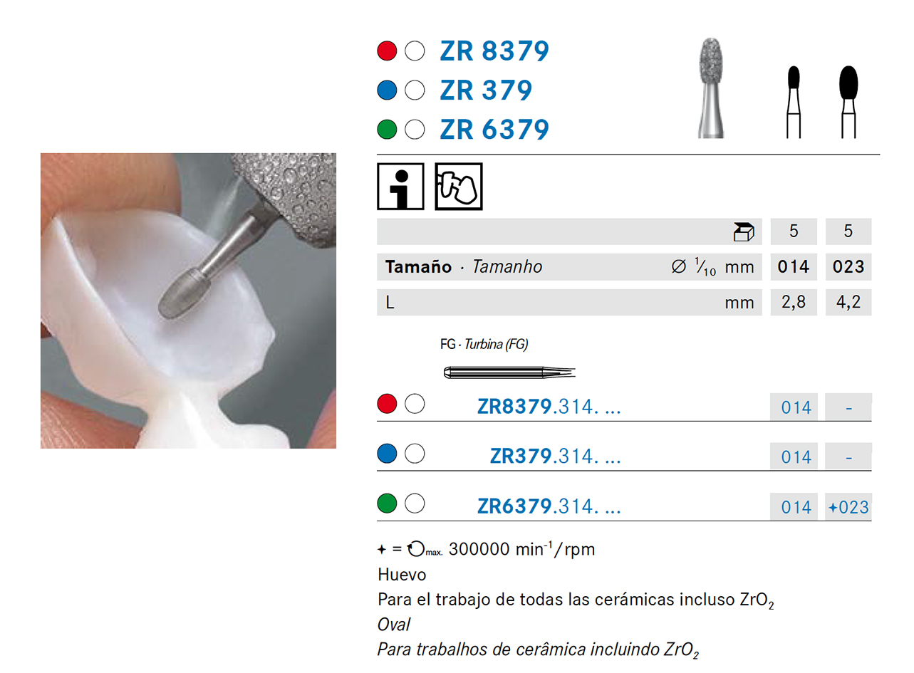 ZR379.314.014 KOMET DIAMOND BUR EGG TURBINE ø 014 - 5 pcs