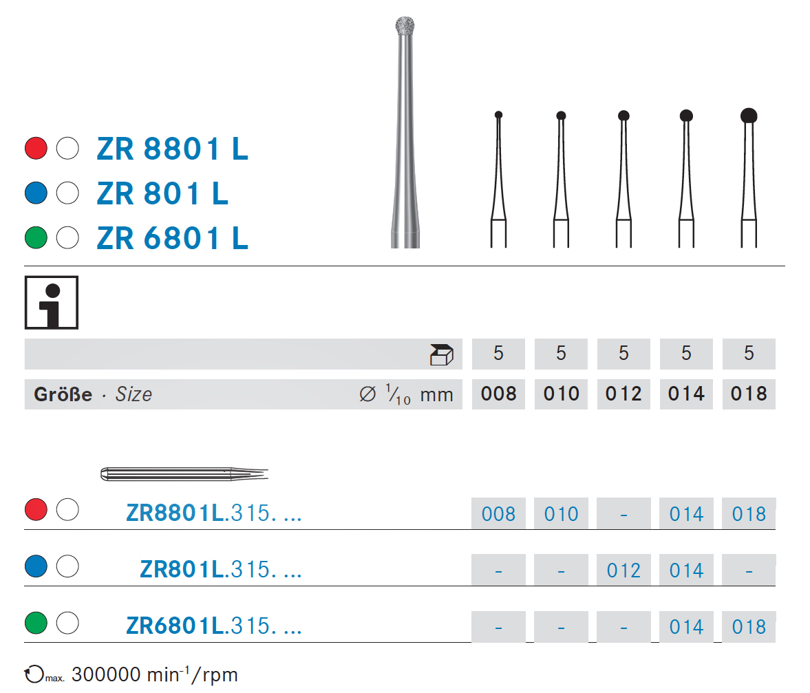 ZR6801L.315.018 KOMET DIAMOND ROUND BUR TURBINE LONG ø 018 - 5 pcs
