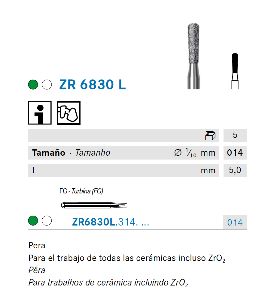ZR6830L.314.014 KOMET DIAMOND PEAR BUR ø 014 - 5 pcs