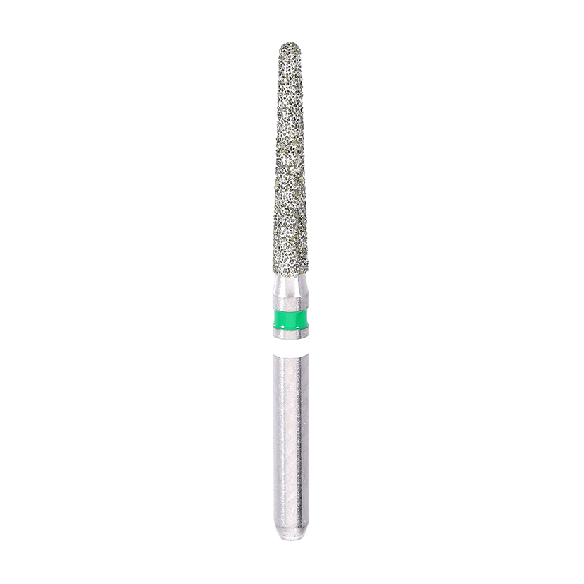 Long conical bur with rounded edge, coarse diamond abrasive for zirconium oxide for laboratory turbine ISO: - Maximum Speed: 450,000 rpm - CONICAL ROUND GRAIN Diameter: 016 - Shank: TURBINE - COARSE GRAIN Application: ZIRCONIUM OXIDE PREPARATION - Packaging Quantity: 5