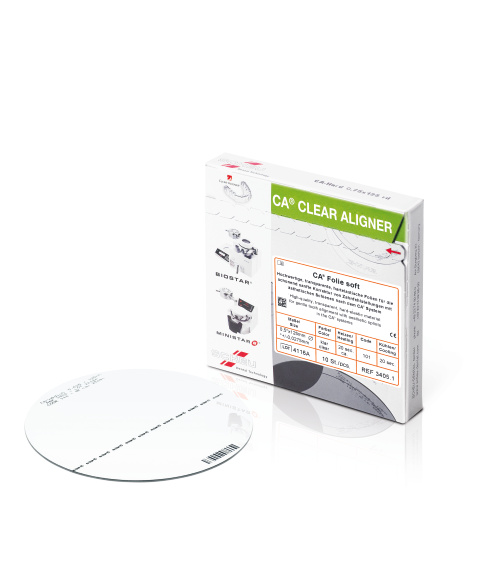 Transparent, hard, and elastic plates for the gentle and delicate correction of dental misalignment using the CA system. All plates carry the original CA identification. Hard, 0.75 x 125 mm, 10 units.