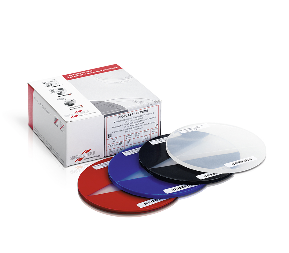 BIOPLAST XTREME sheets are ideal for the simple and safe fabrication of individual sports mouthguards. A hard reinforcement wedge (shore A:92) provides additional protection in the anterior region and allows for precise positioning with the desired expansion. A soft layer (shore:85) is available for laminating with BIOPLAST or for incorporating the opposing bite. Only for MINISTAR from 4/92 and BIOSTAR from 4/99.
