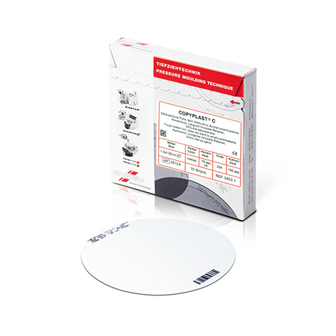 Transparent, viscoelastic sheets that are abrasion-resistant. Not compatible with self-curing resin. APPLICATION: Long-lasting retention splints, corrective orthodontic splints.