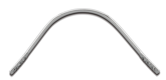 Elliptical and hard profile made of stainless steel (material DIN no. 1.4310), anatomically curved with marked and stamped retainers.