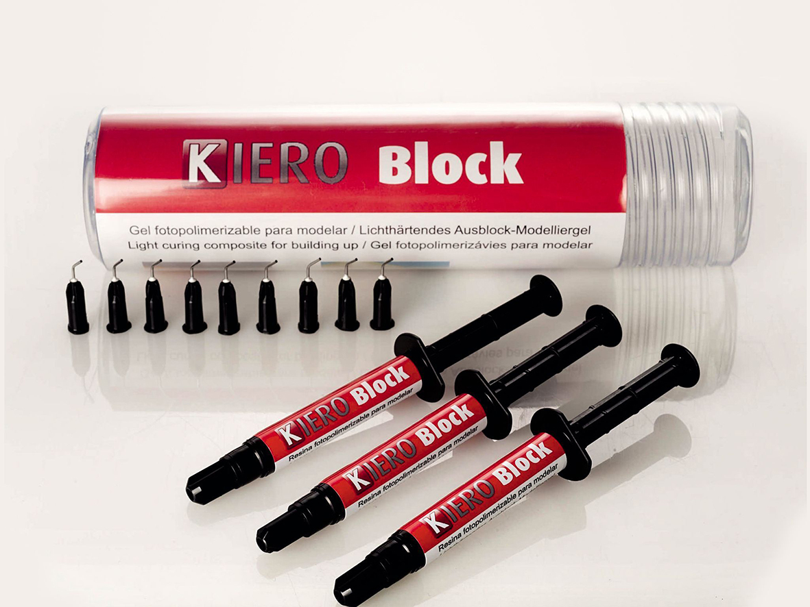 Gel fotopolimerizável vermelho para modelações em sistemas de pantógrafos (não é calcinável), bloqueios e correções do modelo, entre outros. Também serve como espaçador na elaboração de férulas flexíveis de branqueamento.