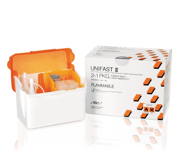Autopolymerizing resin for provisional crowns, bridges, and inlays, as well as for repairs. SURF (Surface Uniformity Revolutionary Fixation Technology) processing technology for polymers. The handling of physical properties and aesthetics has reached unimaginable levels in powder-liquid resins. Advantages: perfect handling for brush application or pouring. Balanced composition for long-lasting provisionals. Color range to meet the highest requirements. Time-saving when using OPTIGLAZE varnish. Easy to use, easy to store, and environmentally friendly.