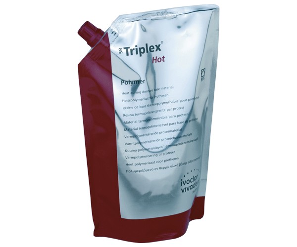 Resina termopolimerizable indicada para prótesis total prótesis parcial prótesis combinada prótesis híbrida y rebases. SR Triplex Hot convence por su exactitud estabilidad de forma y estabilidad cromática.