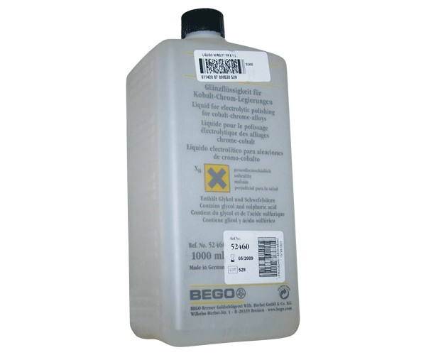 Polishing liquid. Liquid for the electrolytic polishing of chrome-cobalt alloys. Wirolyt is not only suitable for Eltropol but also for the electrolytic devices of other manufacturers, and it always guarantees effectiveness.