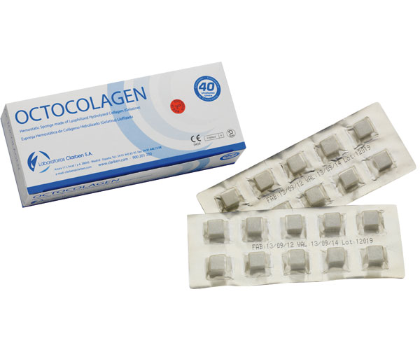 Hemostatic sponge made of hydrolyzed collagen. It exhibits a healing hemostatic action and is completely reabsorbable by the body. Each cube measures 10x10x10 mm.