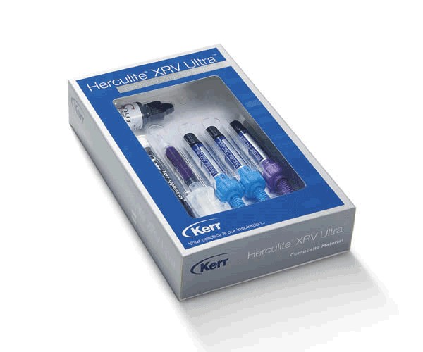 HERCULITE XRV ha sido la referencia en composites para la industria dental durante 20 años. Fielesa nuestro legado de innovación en el desarrollo de materiales dentales de calidad KERR HAWE hace historia de nuevo con el lanzamiento de un nuevo miembro en la familia de los composites de KERR HAWE: HERCULITE XRV Ultra Composite nano-híbrido. Basado en la última tecnología sobre nano-rellenosofrece además una mejorada manipulación pulido y resistencia al desgaste. El nuevo HERCULITE XRVUltra ha mejorado la apariencia de vitalidad de las restauraciones replicando la opalescencia y lafluorescencia del diente natural CONTENIDO: 3 jeringas (4 g) en tonos esmalte A2, A3, dentina A2: 1 frasco OptiBond™ Solo Plus (5 ml): 1 grabador en gel (3 g): 25 pocillos de mezcla desechables: 50 puntas aplicadoras